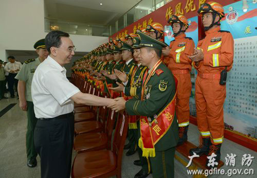 希望全省公安消防部隊廣大官兵團結(jié)一致,投身廣東消防五大工程建設(shè),刻苦學(xué)習(xí)、科學(xué)訓(xùn)練、增強本領(lǐng)、勇于擔(dān)當,全面提升防控、救援能力,更好地服務(wù)廣東經(jīng)濟社會發(fā)展和人民群眾安居樂業(yè),為推動我省加快實現(xiàn)“三個定位、兩個率先”目標作出更大的貢獻。