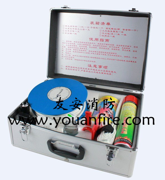 打開鋁合金箱,先取出火災(zāi)逃生面具,撕開產(chǎn)品包裝,戴在頭上然后拿出小型滅火器和滅火毯進行滅火,如火勢過大不能撲滅時,選擇逃生路徑進行逃生,逃生過程中可使用強光手電,安全錘,救生緩降器等應(yīng)急工具,如沒有有效路徑逃生,應(yīng)選擇相對安全位置等待救援。